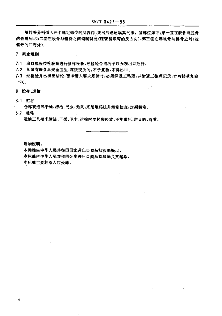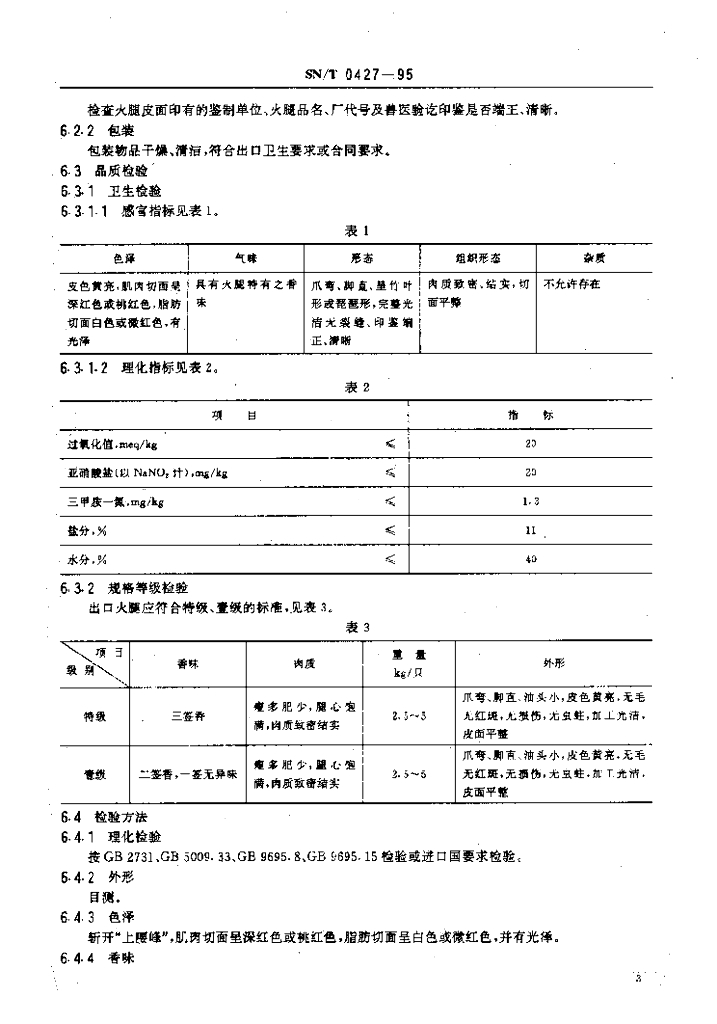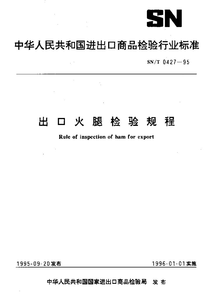 SN/T 0427-1995 出口火腿检验规程