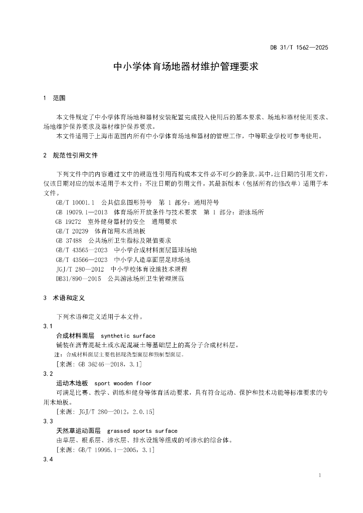 DB31/T 1562-2025 中小学体育场地器材维护管理要求