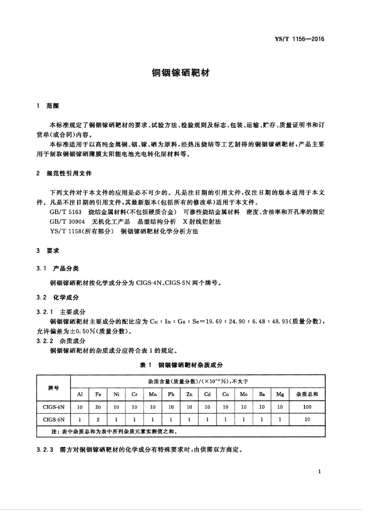 YS/T 1156-2016 铜铟镓硒靶材