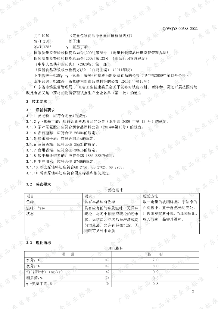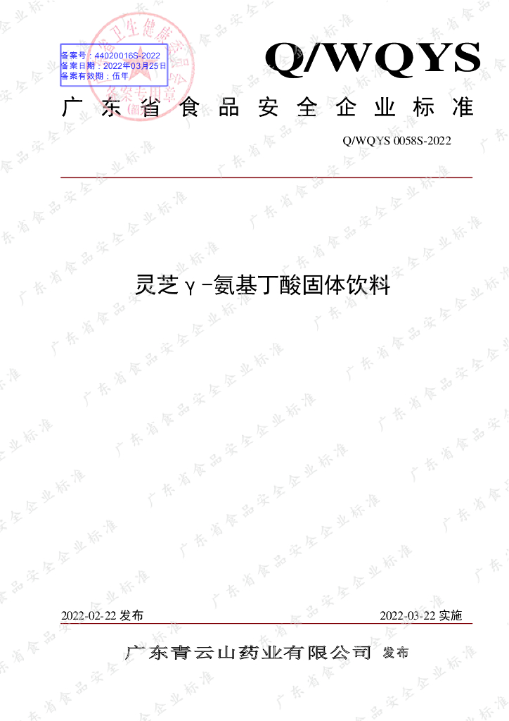 Q/WQYS 0058S-2022 灵芝γ-氨基丁酸固体饮料