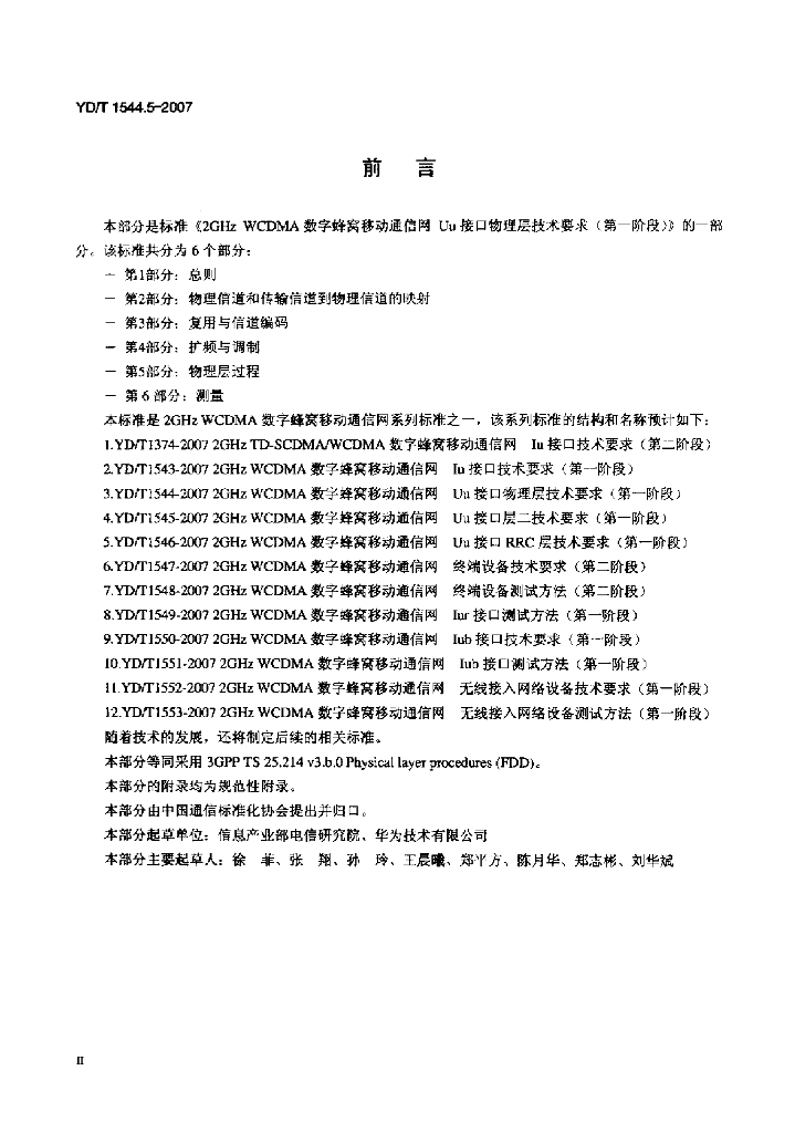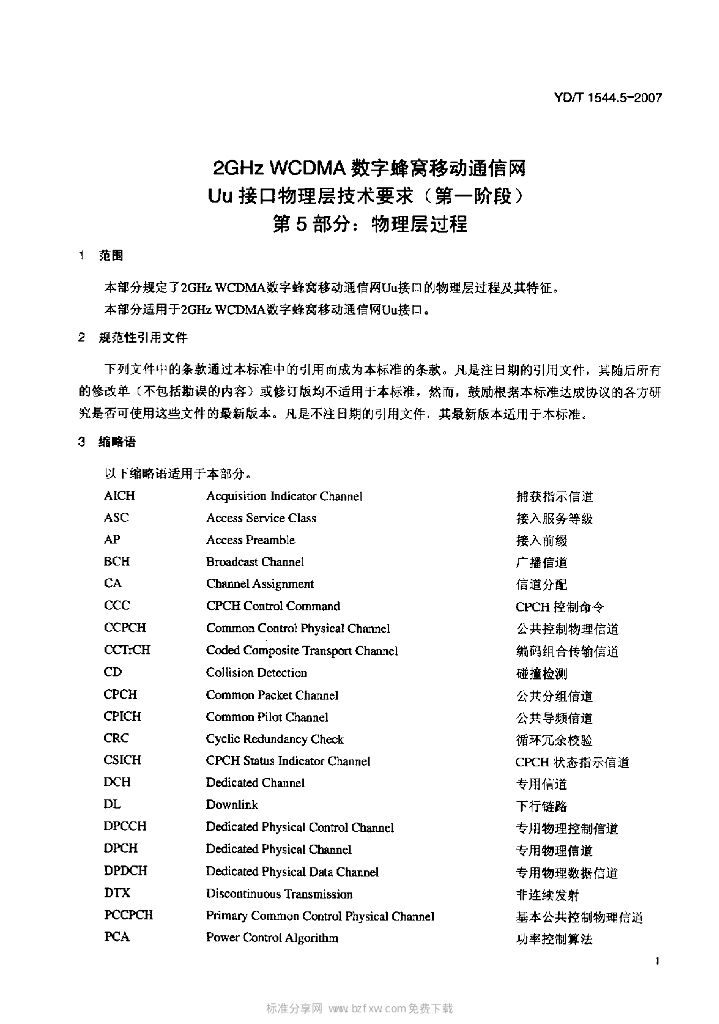 YD/T 1544.5-2007 2GHz WCDMA 数字蜂窝移动通信网 Uu 接口物理层技术要求(第一阶段) 第5部分:物理层过程