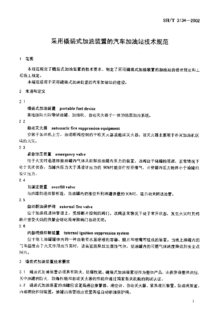 SH/T 3134-2002 采用橇装式加油装置的汽车加油站技术规范