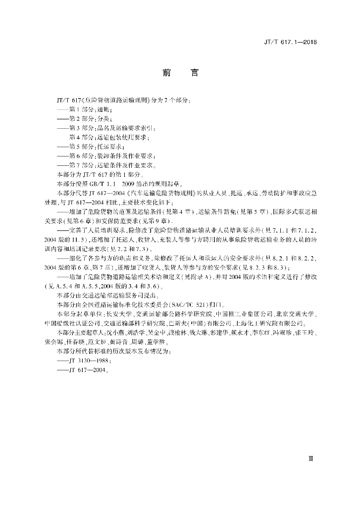 JT/T 617.1-2018 危险货物道路运输规则 第1部分:通则