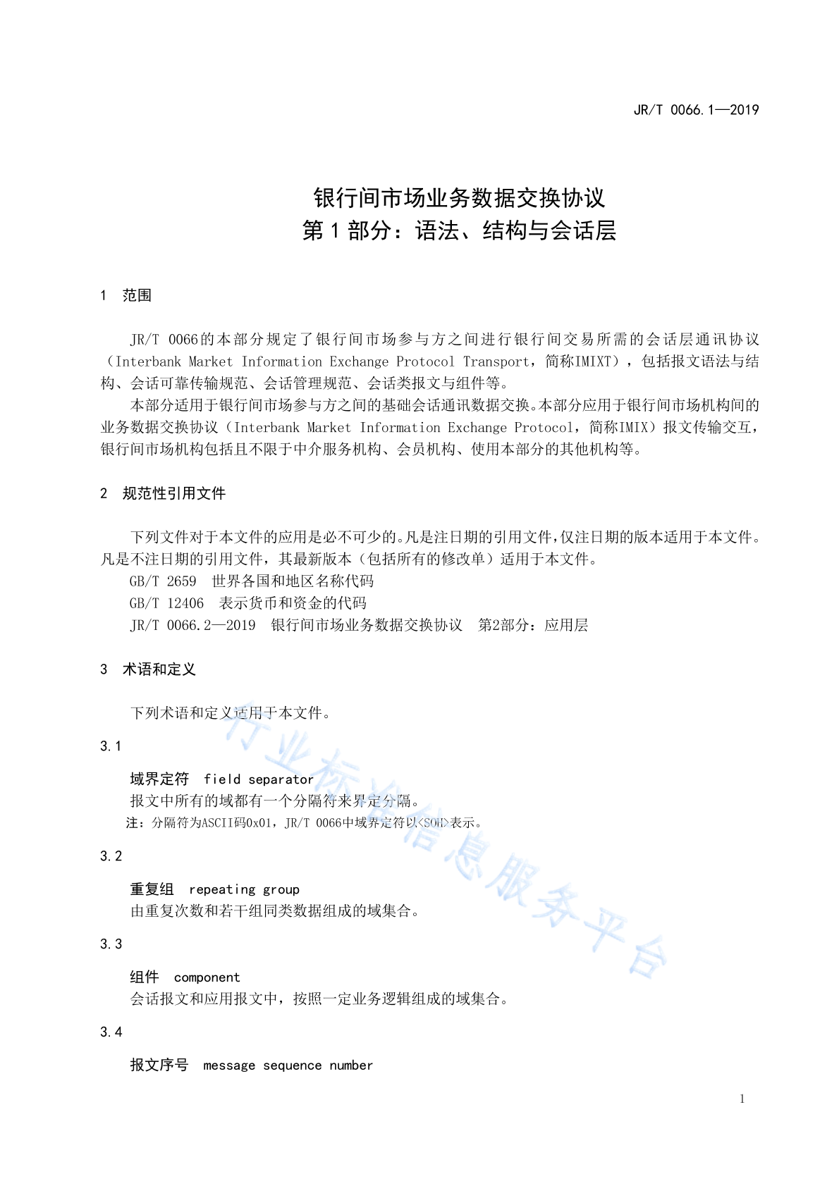 JR/T 0066.1-2019 银行间市场业务数据交换协议 第1部分:语法、结构与会话层