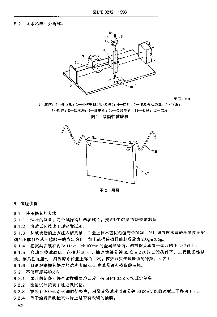 SH/T 0212-1998 防锈油脂除膜性试验法