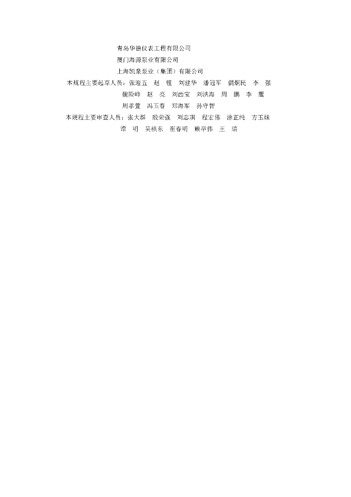 天津市供水管理处、中国建筑设计研究院机电专业设计研究院、天津市建筑设计院、重庆市供水管理处、济南市城市计划节约用水办公室、青岛市供水管理处、天津大学建筑设计研究院、同济大学建筑设计研究院(集团)有限公司、天津华汇工程建筑设计有限公司、合肥供水集团有限公司、哈尔滨供排水集团二次供水公司、天津市华澄供水工程技术有限公司、上海瀚深水业智能仪器有限公司、天津晨天自动化设备工程有限公司、无锡康宇水处理设备有限公司、天津市康天供水技术有限公司、天津市国威给排水设备制造有限公司、开利泵业(集团)有限公司、上海东方泵业(