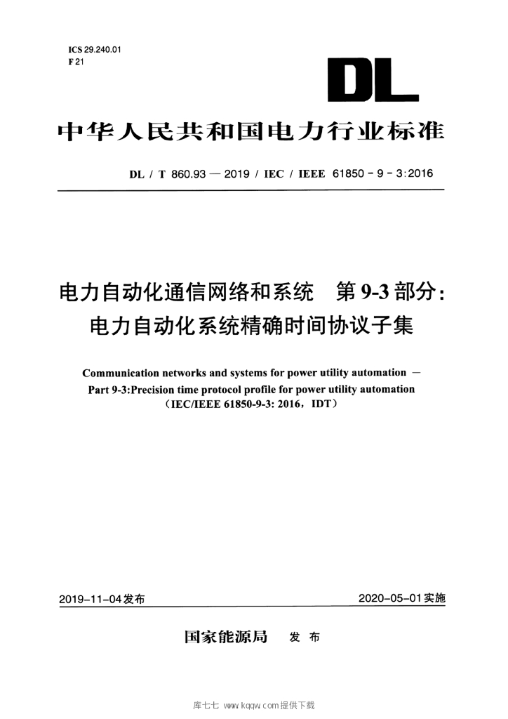 DL/T 860.93-2019 电力自动化通信网络和系统 第9-3部分:电力自动化系统精确时间协议子集