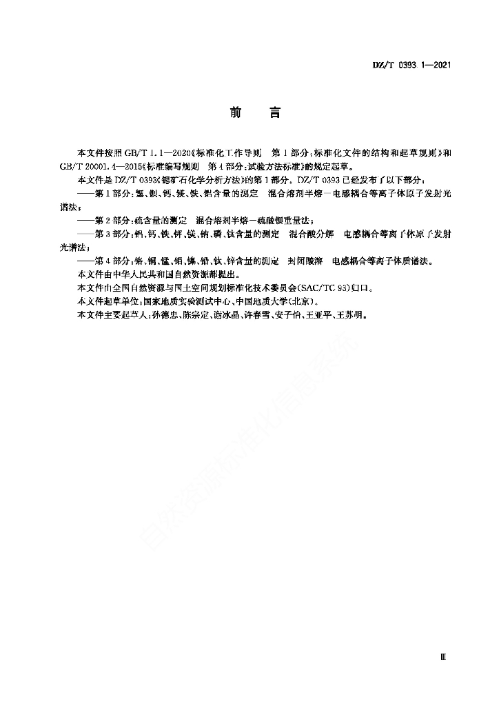 DZ/T 0393.1-2021 锶矿石化学分析方法 第1部分:锶、钡、钙、镁、铁、铝含量的测定 混合熔剂半熔-电感耦合等离子体原子发射光谱法