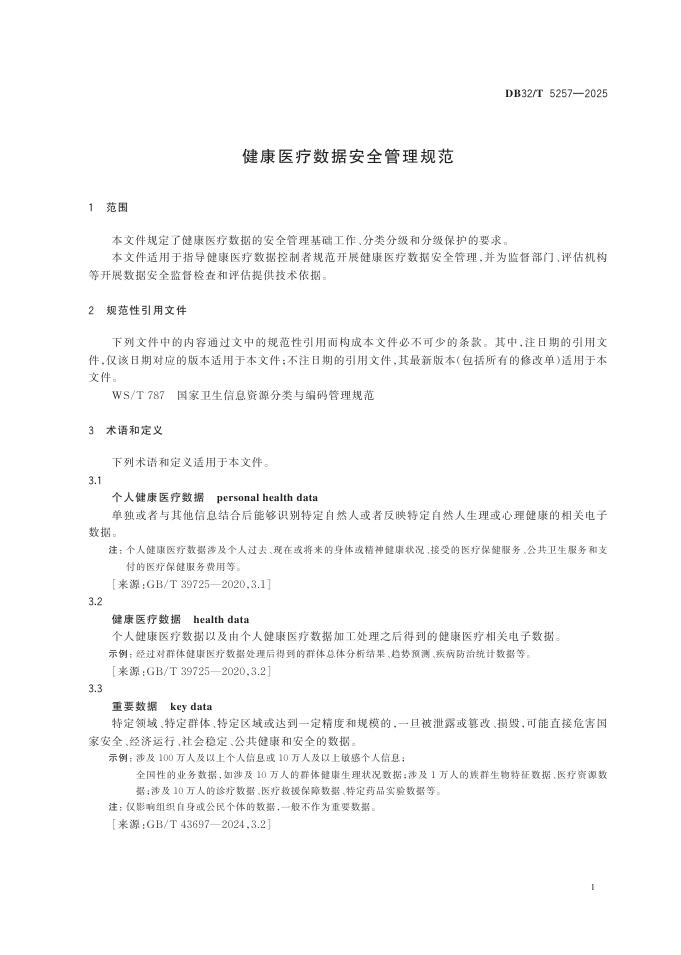 DB32/T 5257-2025 健康医疗数据安全管理规范