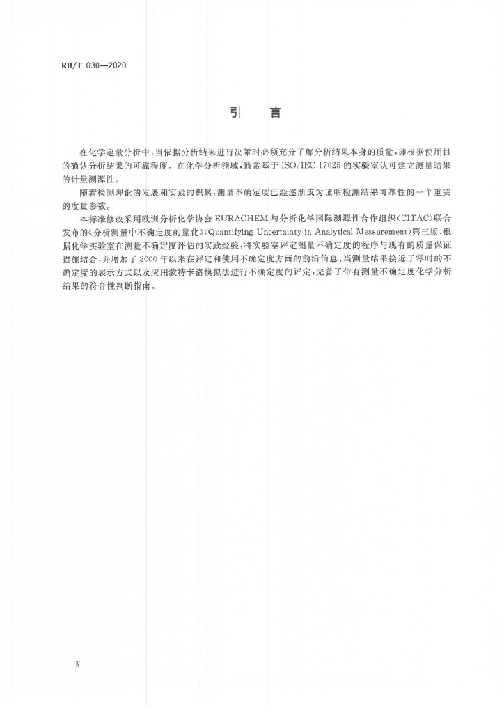RB/T 030-2020 化学分析中测量不确定度评估指南