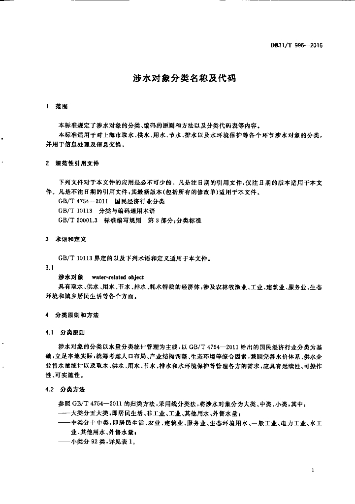 DB31/T 996-2016 涉水对象分类名称及代码
