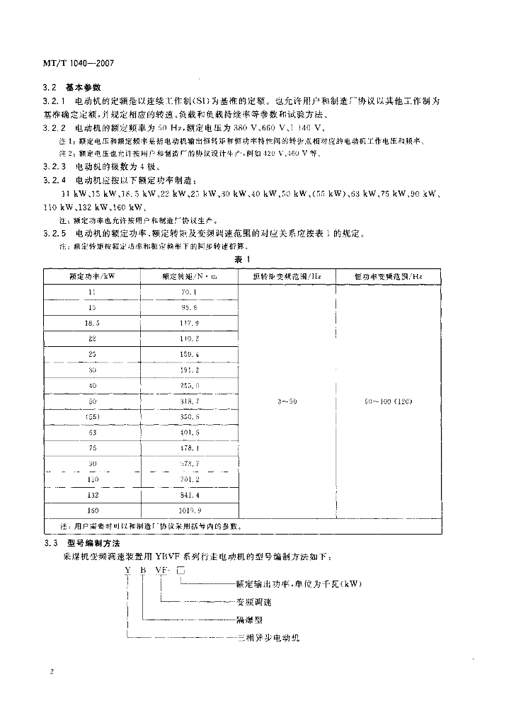 MT/T 1040-2007 采煤机变频调速装置用YBVF系列行走电动机技术条件