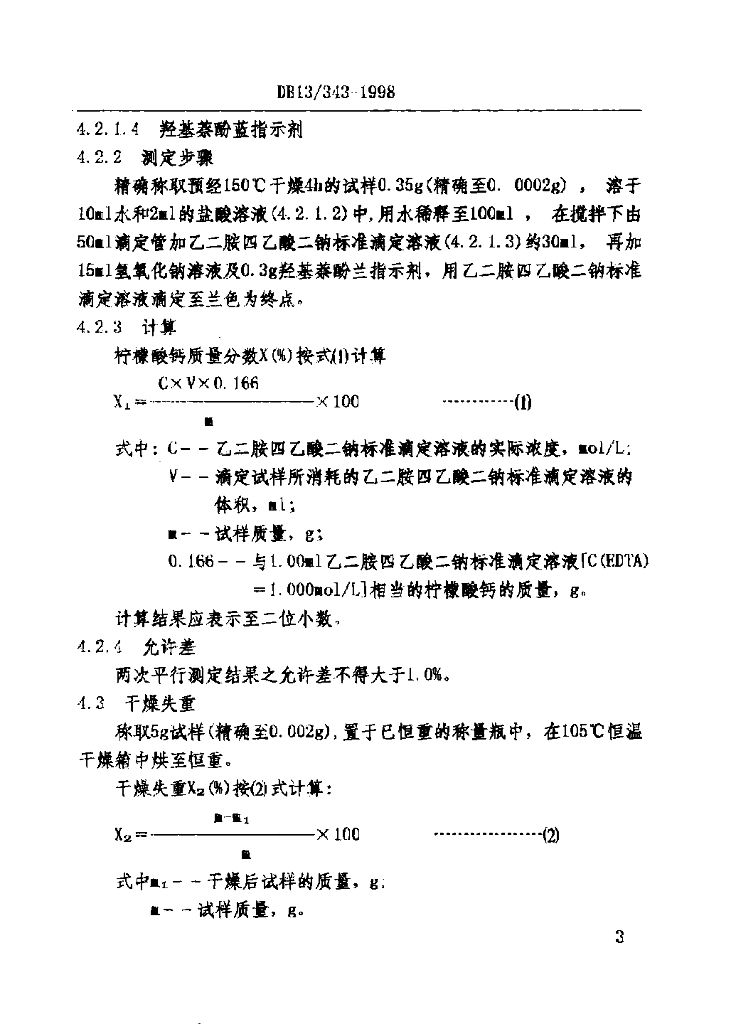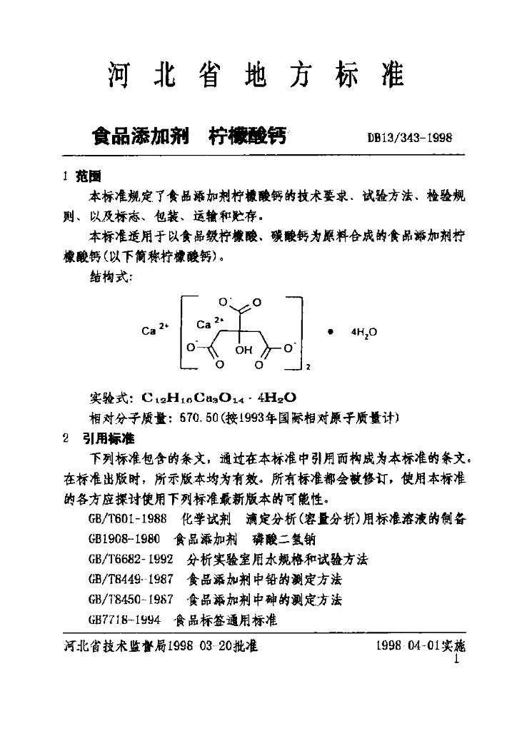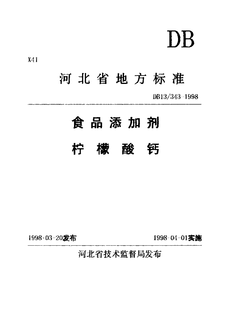 DB13/ 343-1998 食品添加剂 柠檬酸钙
