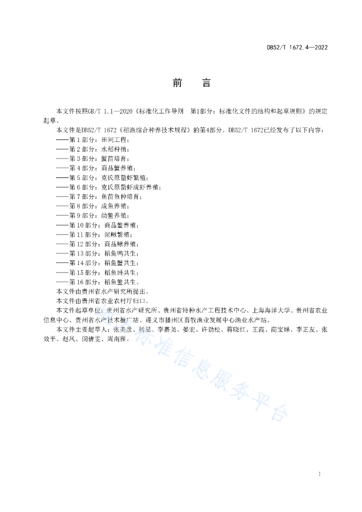 贵州省水产研究所、贵州省特种水产工程技术中心、上海海洋大学、贵州省农业信息中心、贵州省水产技术推广站、遵义市播州区畜牧渔业发展中心渔业水产站