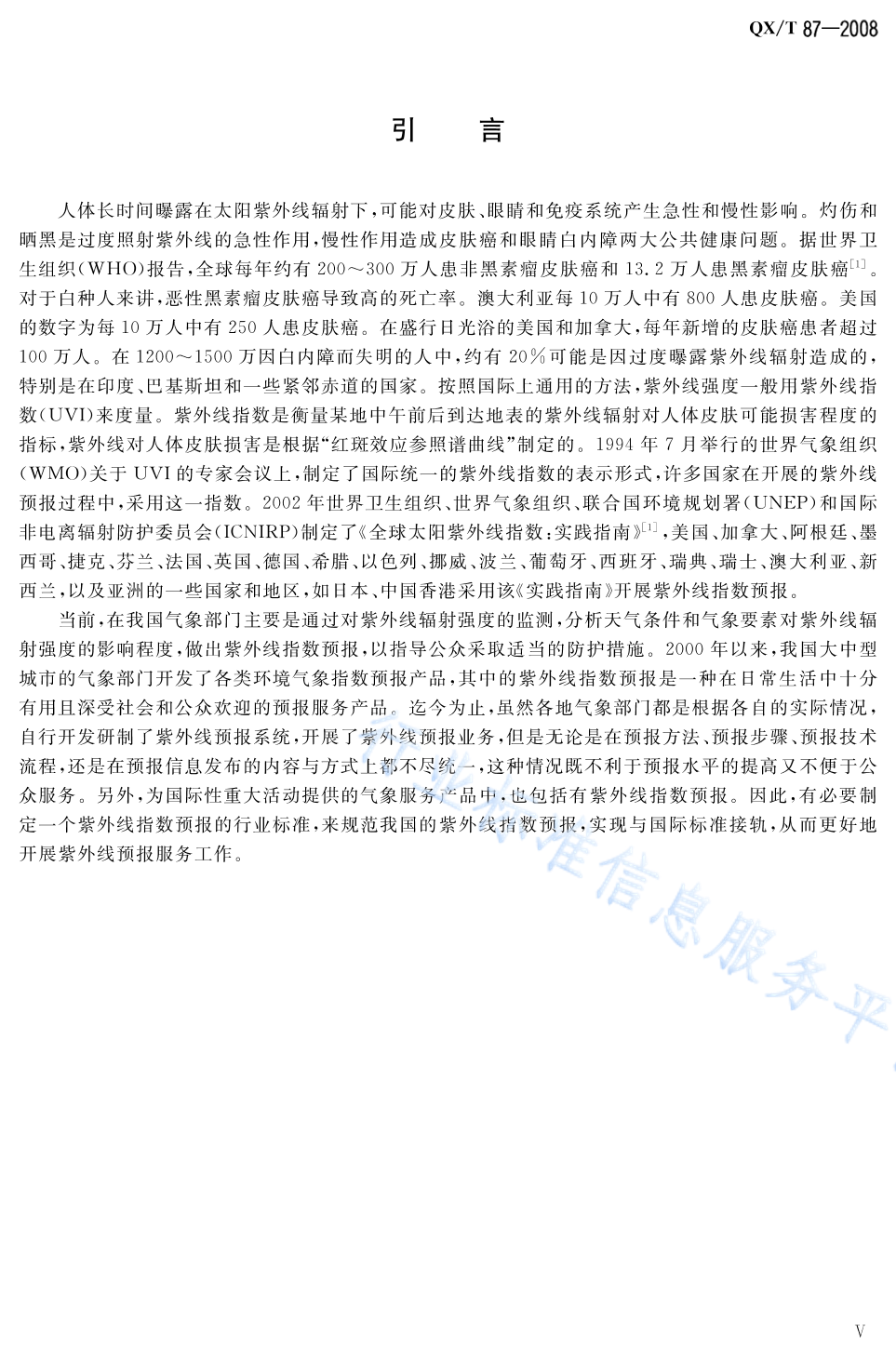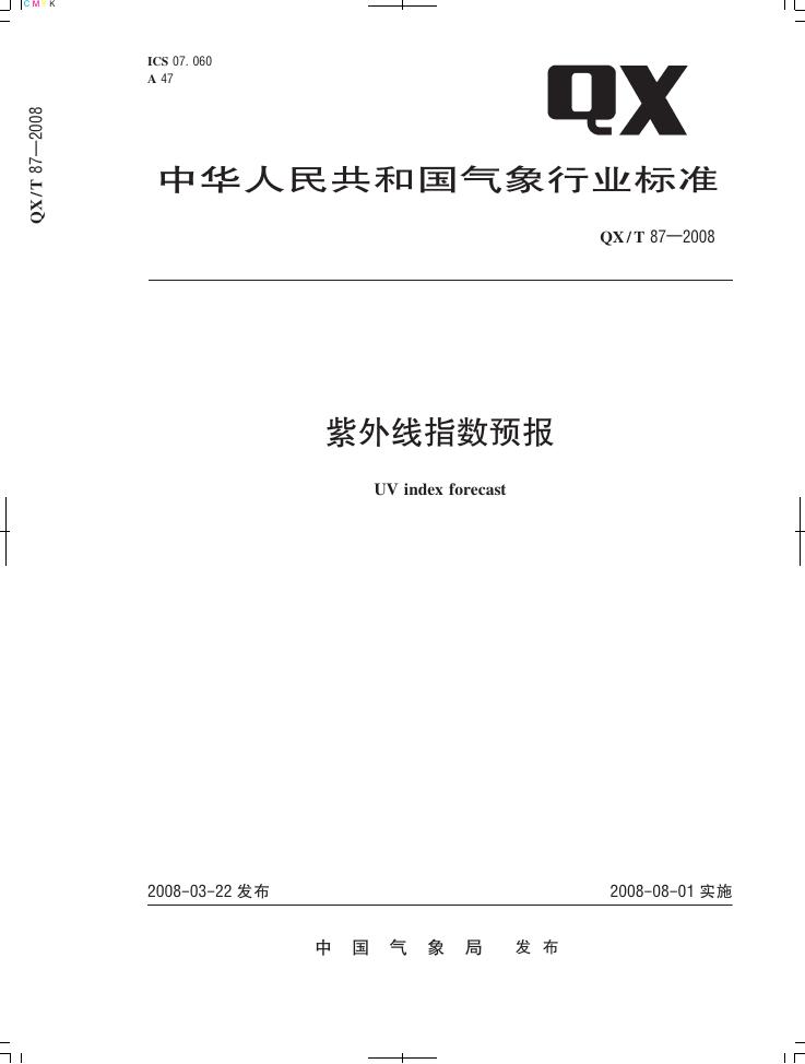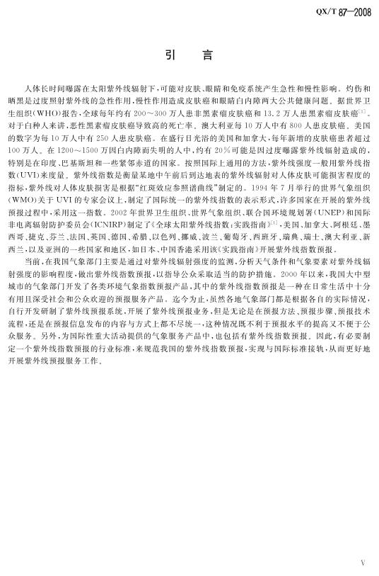 QX/T 87-2008 紫外线指数预报
