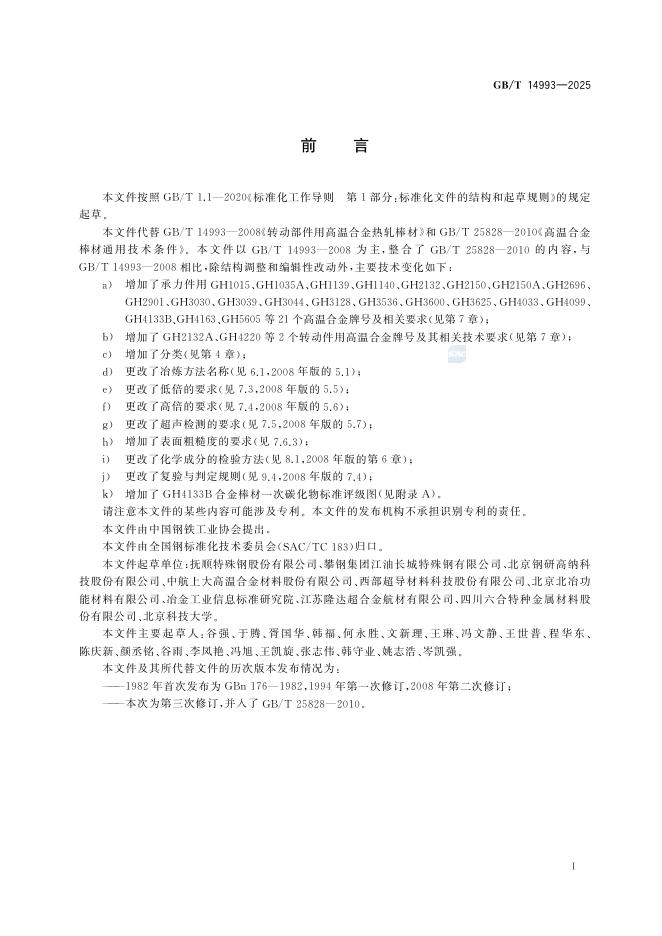 GB/T 14993-2025 变形高温合金 热轧和锻制棒材