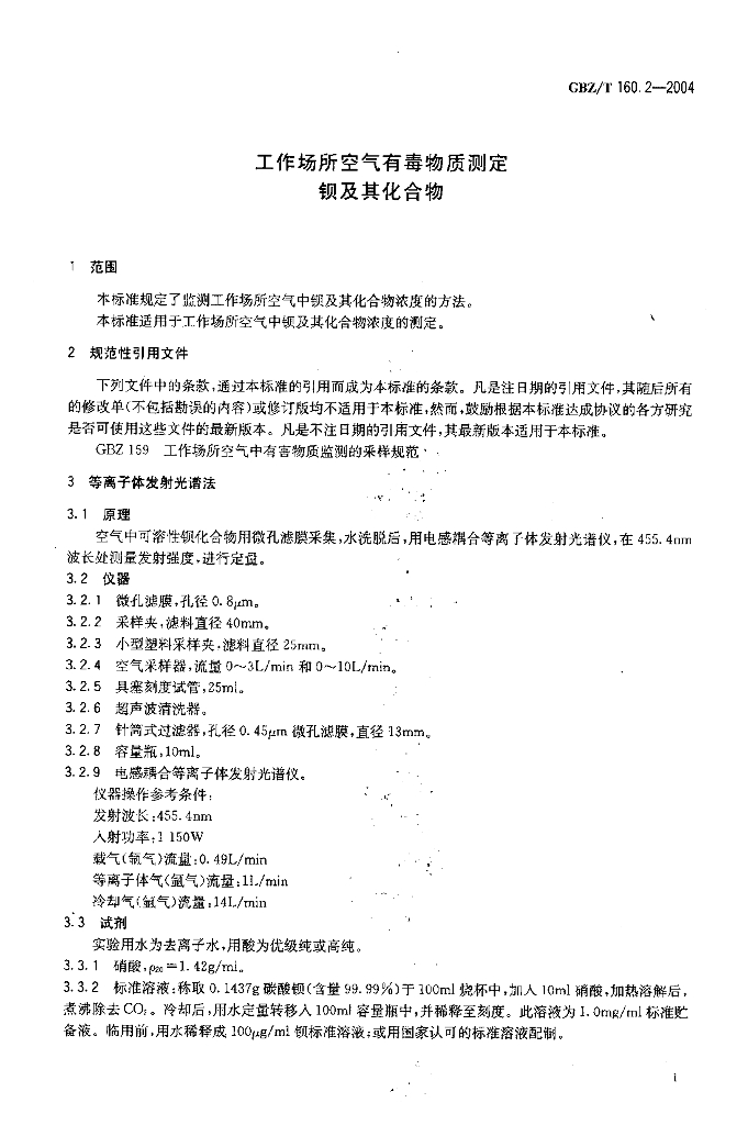 GBZ/T 160.2-2004 工作场所空气有毒物质测定 钡及其化合物