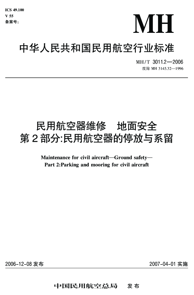 MH/T 3011.12-2006 民用航空器维修 地面安全 第12部分:地面消防设施维修、使用和管理