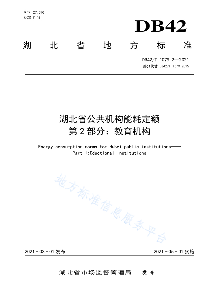 DB42/T 1079.2-2021 湖北省公共机构能耗定额 第2部分:教育机构