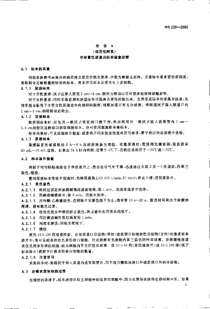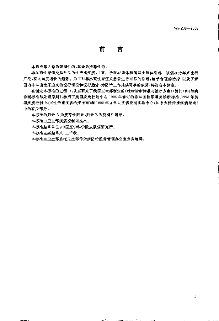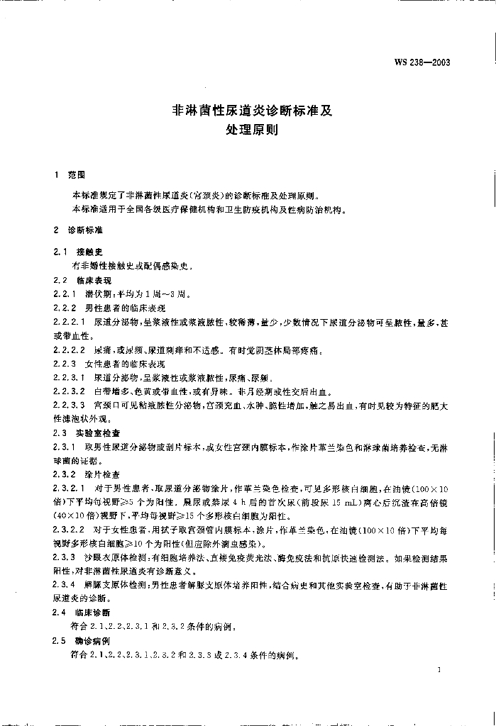 WS 238-2003 非淋菌性尿道炎诊断标准及处理原则