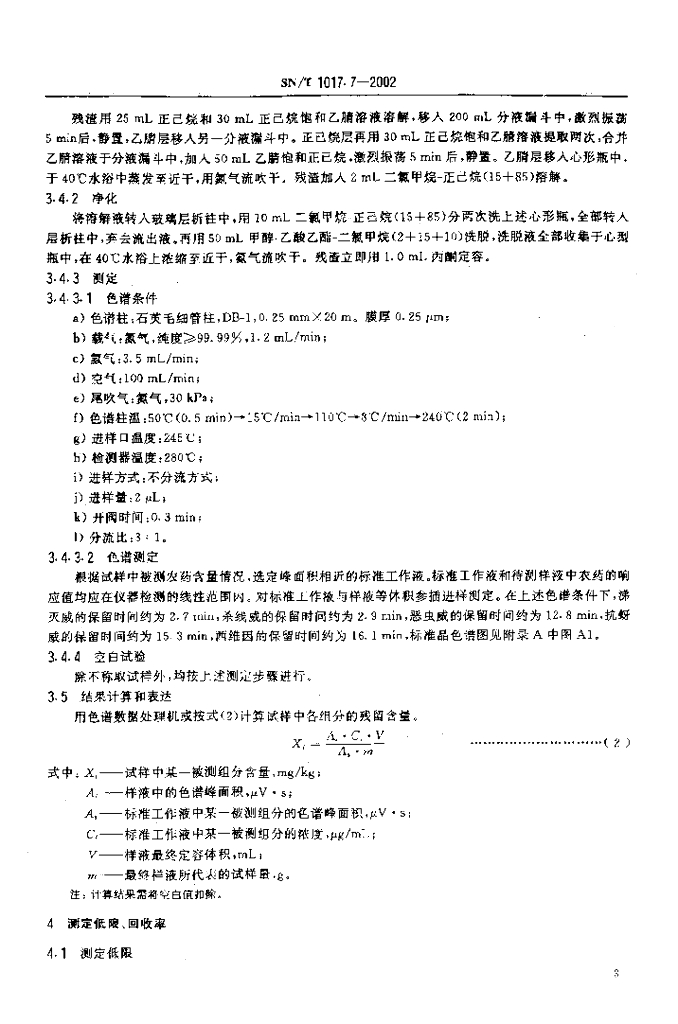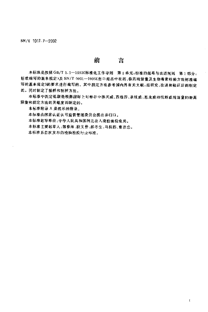 SN/T 1017.7-2002 出口粮谷中涕灭威、西维因、杀线威、恶虫威、抗蚜威残留量检验方法
