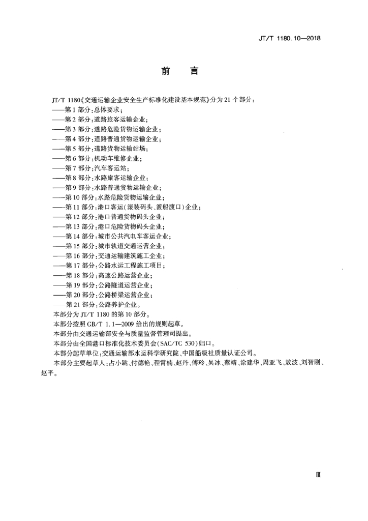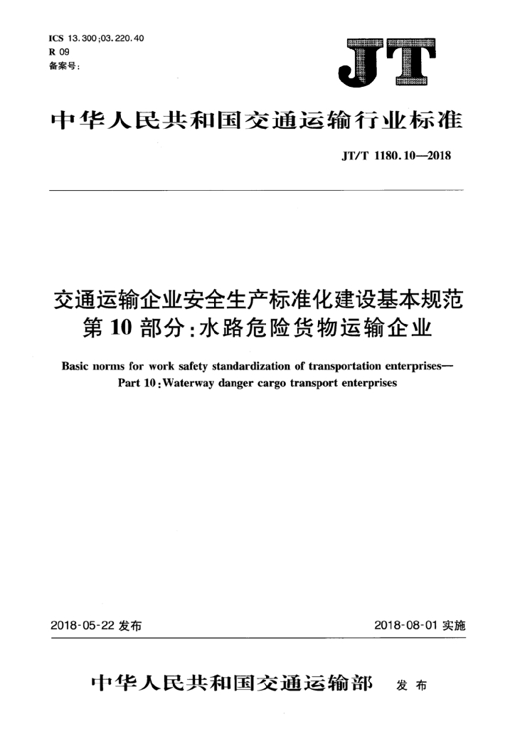 JT/T 1180.10-2018 交通运输企业安全生产标准化建设基本规范 第10部分:水路危险货物运输企业