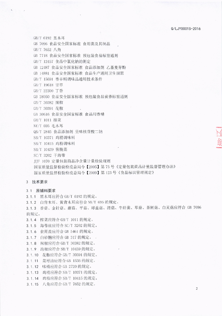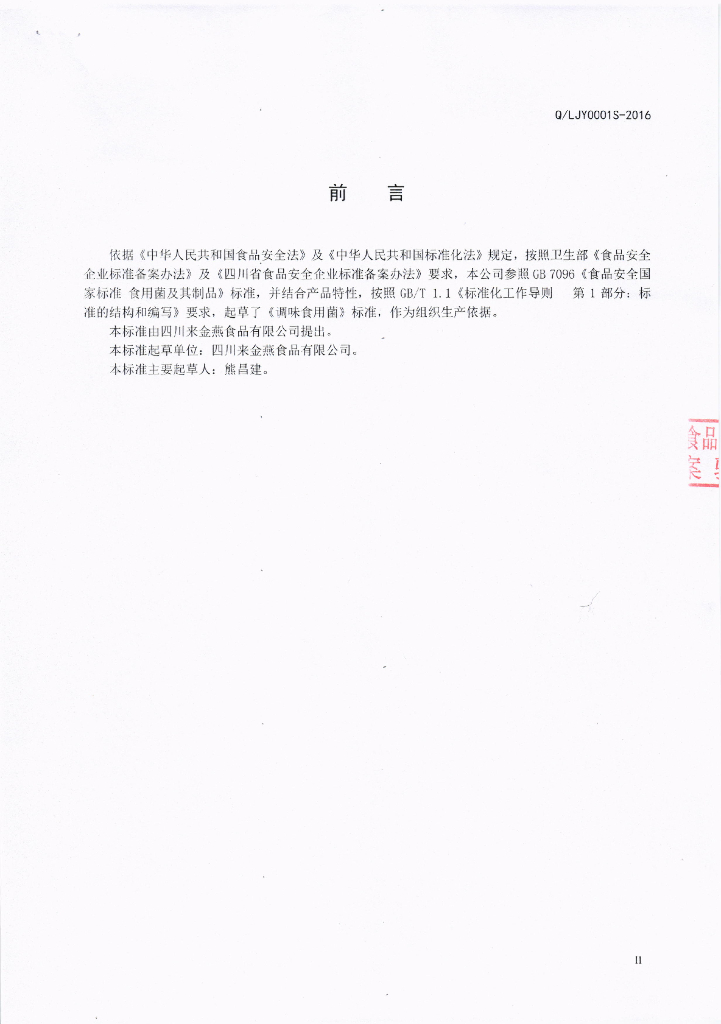 Q/LJY 0001S-2016 四川来金燕食品有限公司 调味食用菌