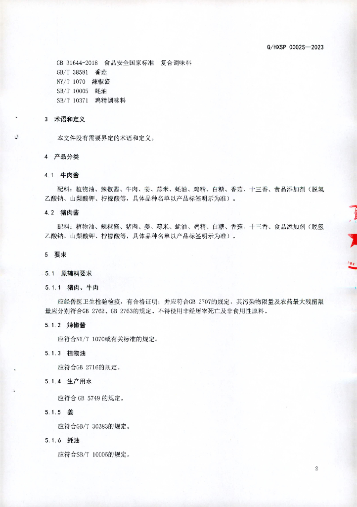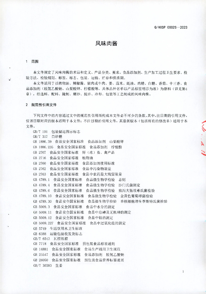 Q/HXSP 0002S-2023 风味肉酱