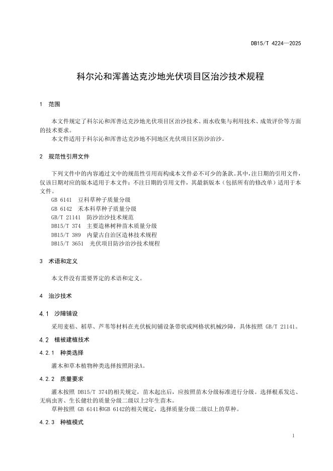 DB15/T 4224-2025 科尔沁和浑善达克沙地光伏项目区治沙技术规程