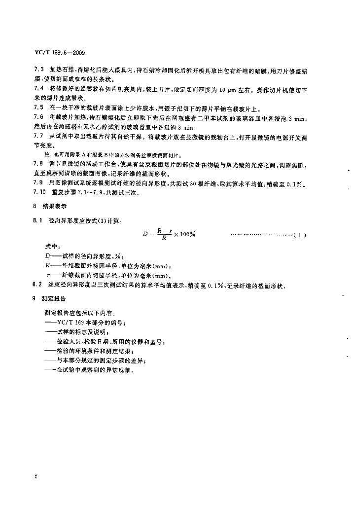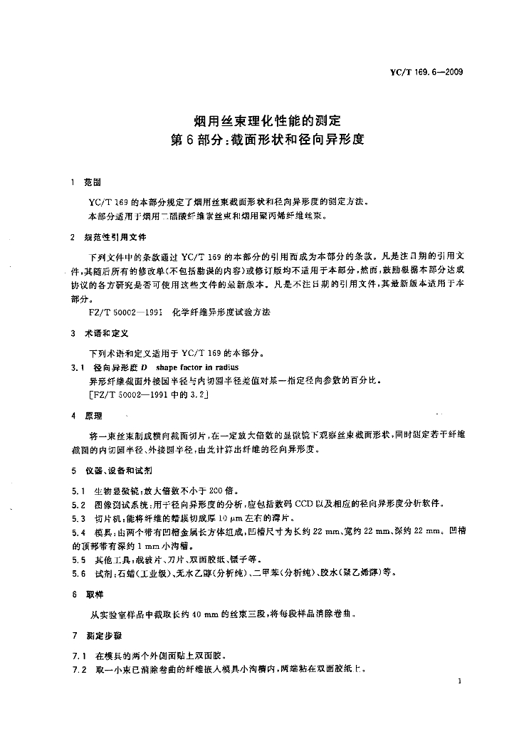 YC/T 169.6-2009 烟用丝束理化性能的测定 第6部分:截面形状和径向异形度