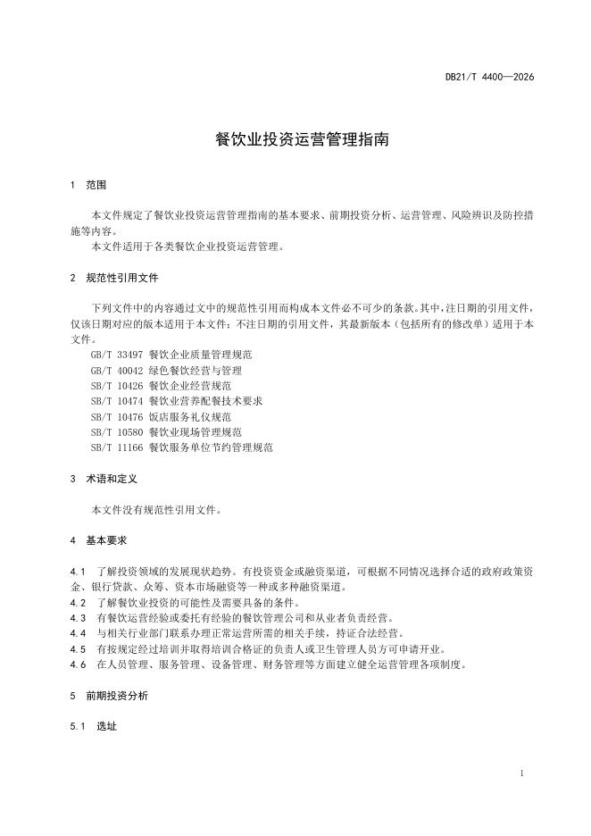 DB21/T 4400-2026 餐饮业投资运营管理指南