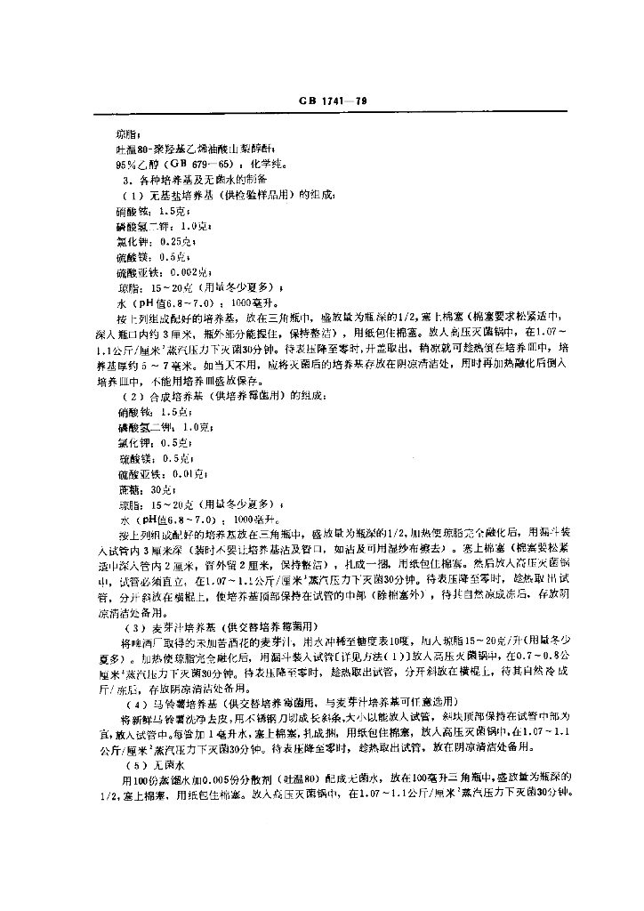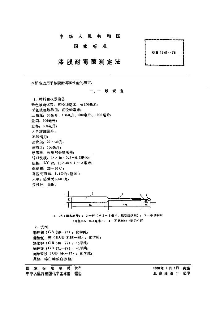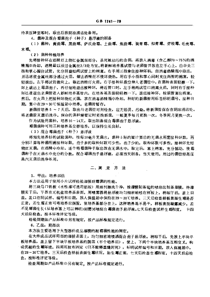 GB/T 1741-1979 漆膜耐霉菌测定法