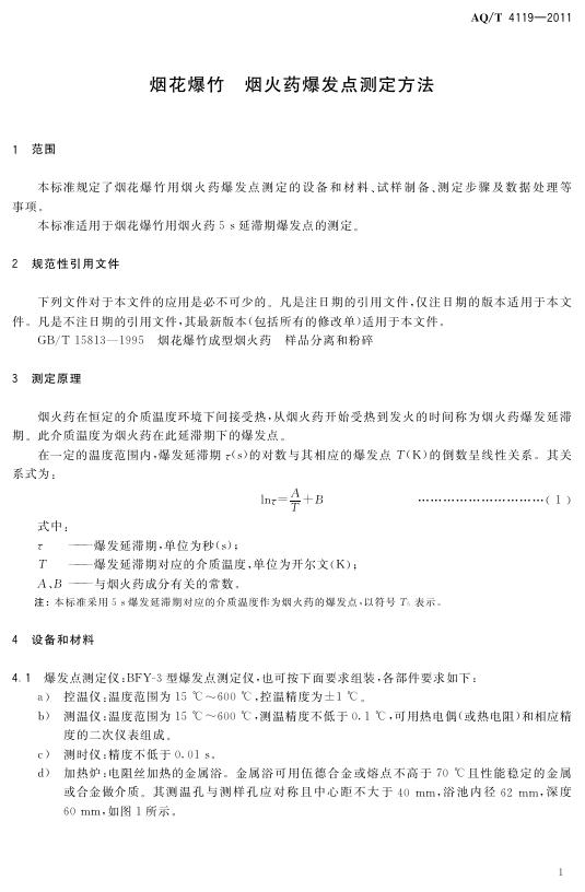 AQ/T 4119-2011 烟花爆竹 烟火药爆发点测定方法
