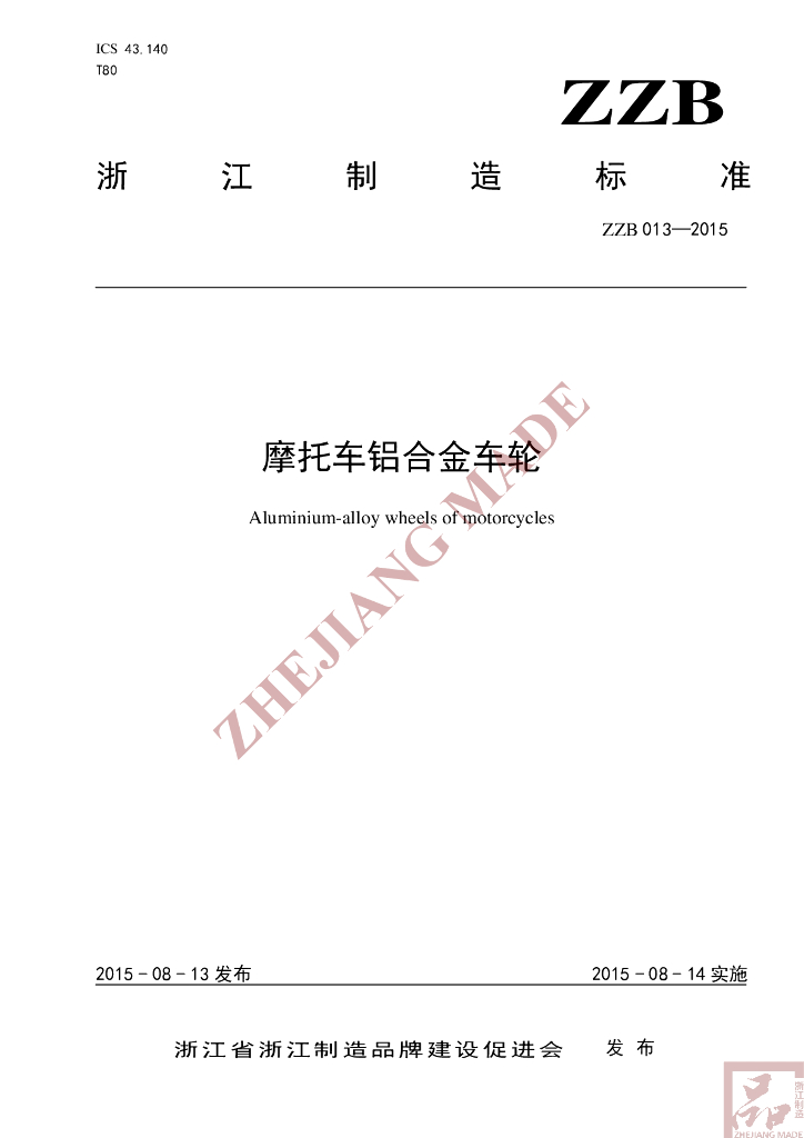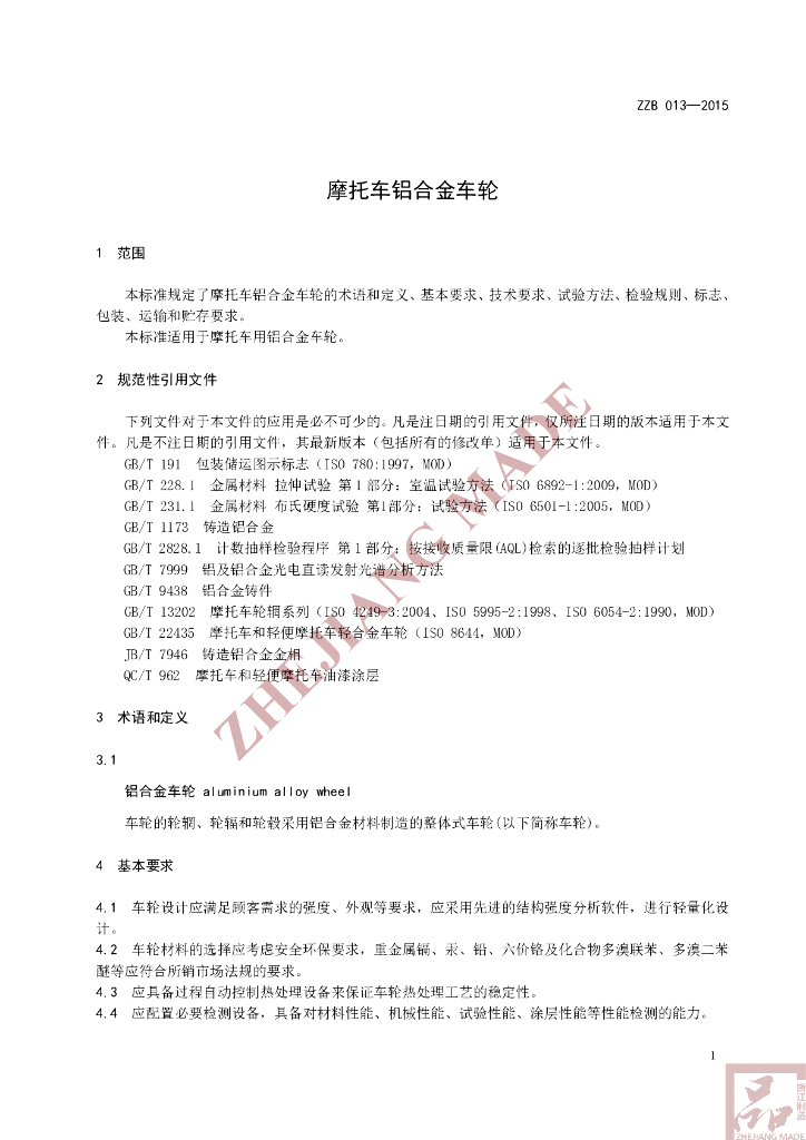 本标准起草单位:浙江万丰摩轮有限公司、浙江万丰奥威汽轮股份有限公司、浙江省标准化研究院。