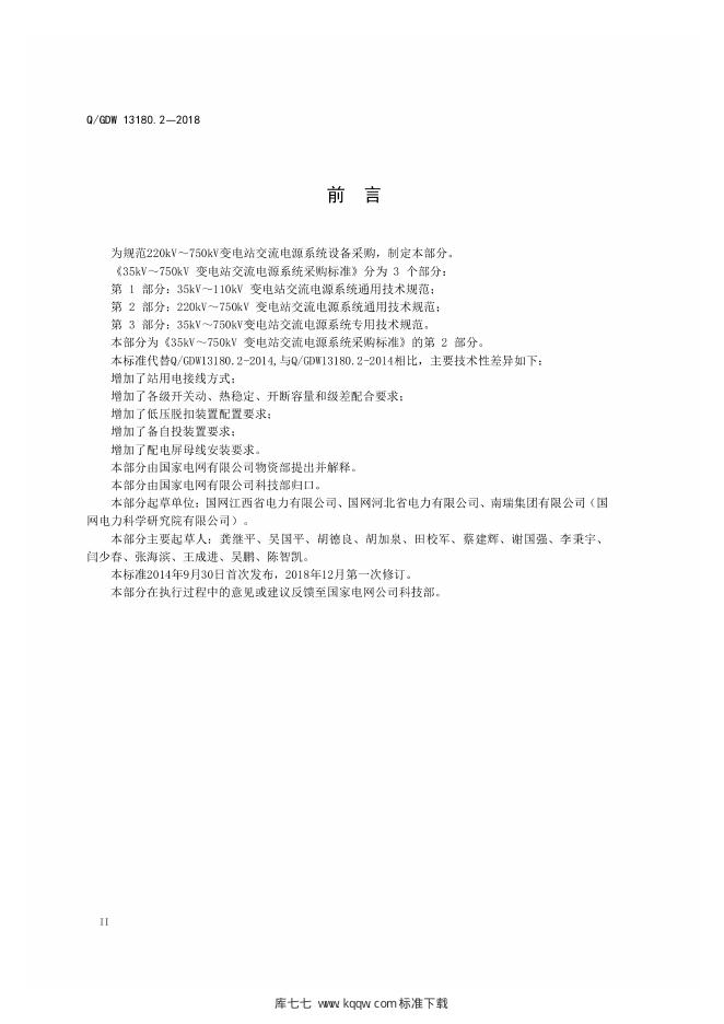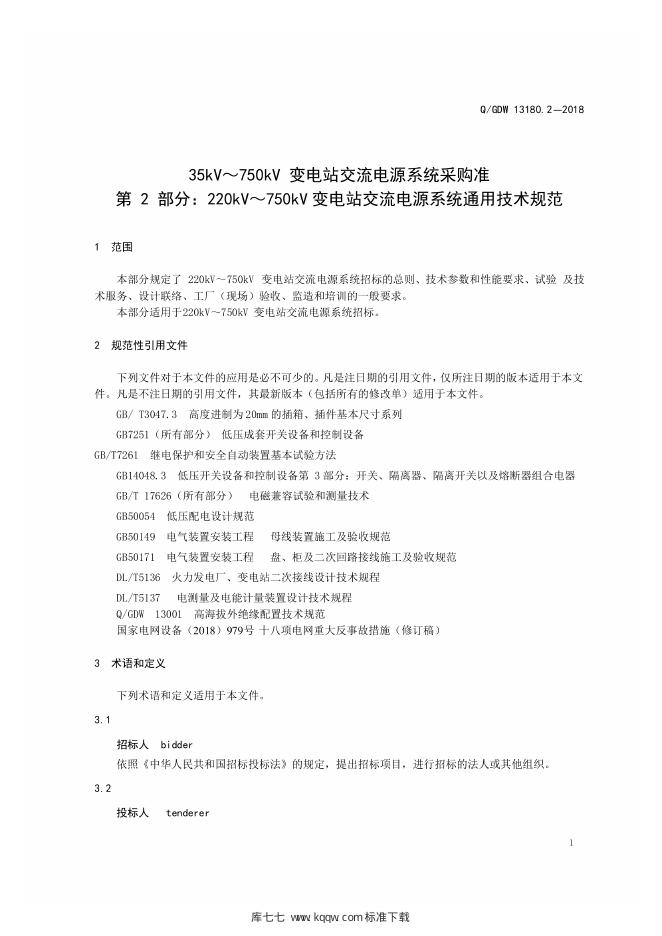 Q/GDW 13180.2-2018 220kV~750kV 变电站交流电源系统采购标准 第2部分:通用技术规范