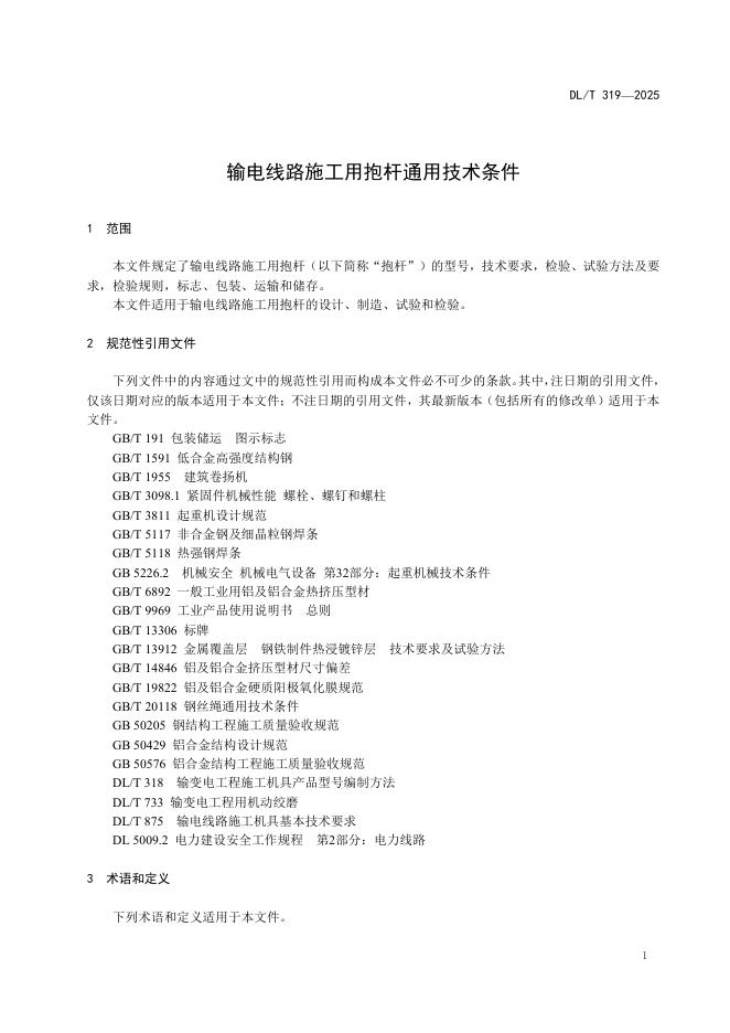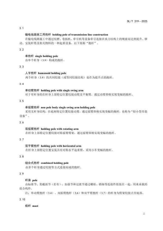 DL/T 319-2025 输电线路施工用抱杆通用技术条件