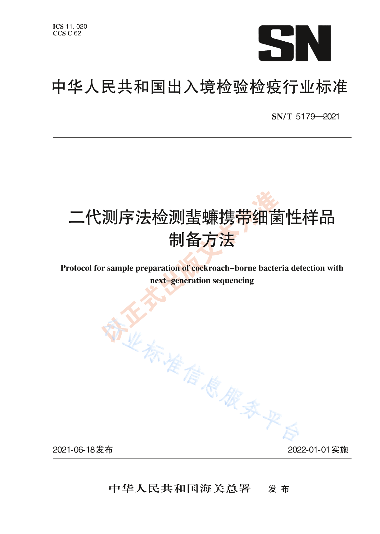 SN/T 5179-2021 二代测序法检测蜚蠊携带细菌性样品制备方法