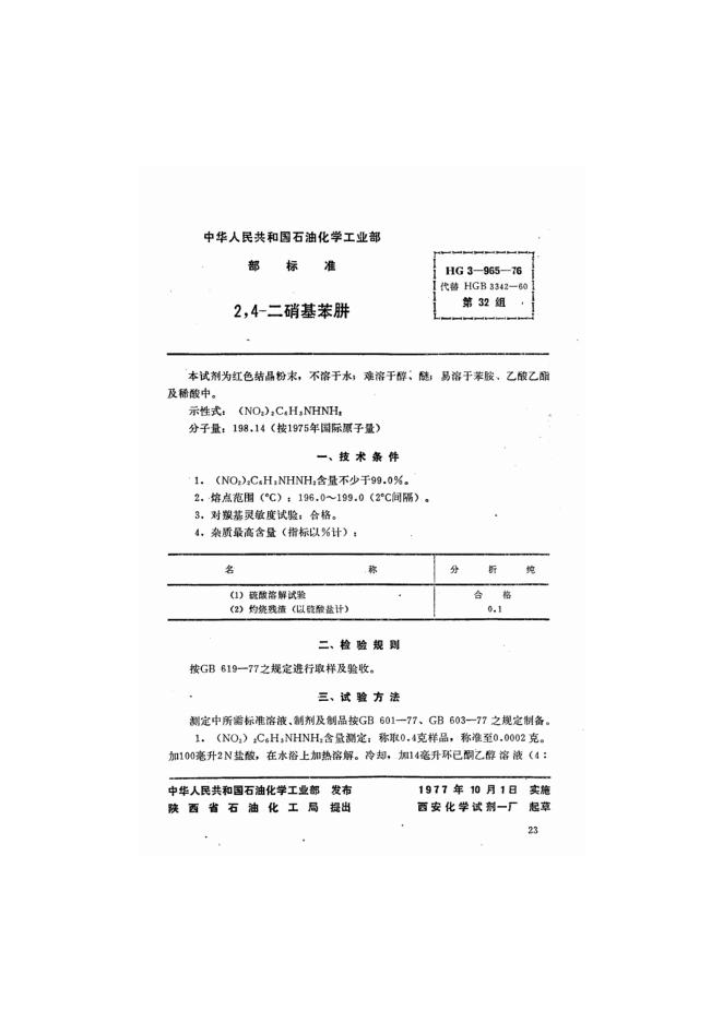 HG 3-965-1976 化学试剂 2,4-二硝基苯肼