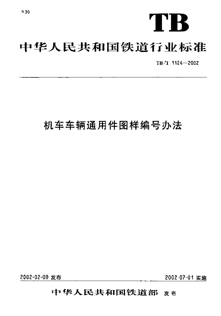 TB/T 1124-2002 机车车辆通用件图样编号方法