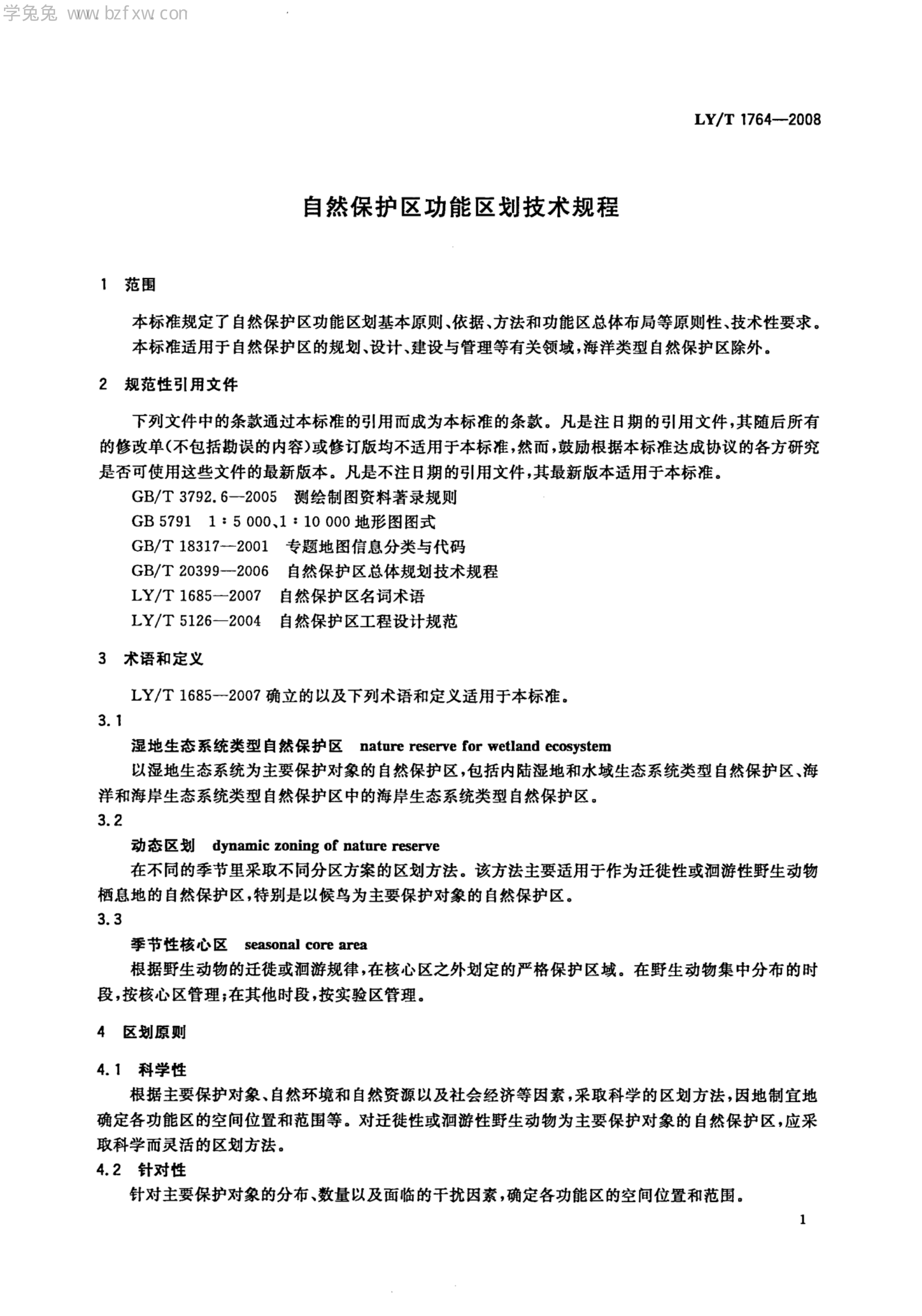 LY/T 1764-2008 自然保护区功能区划技术规程