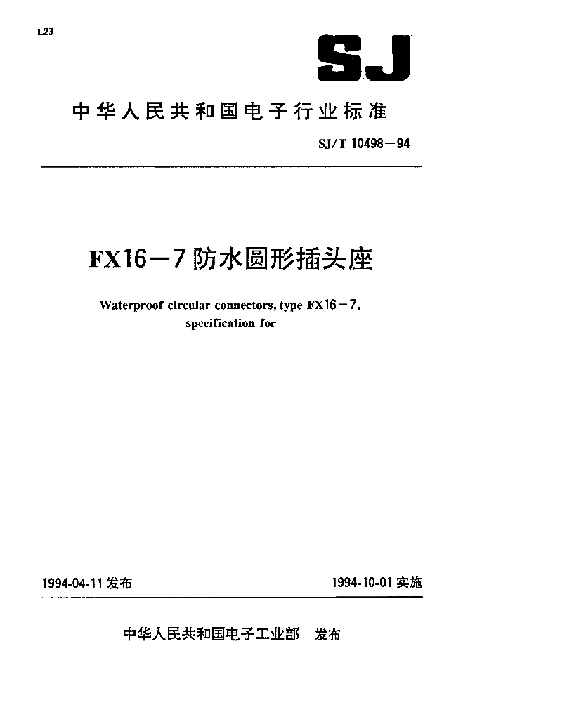 SJ/T 10498-1994 FX16-7型防水圆形插头座