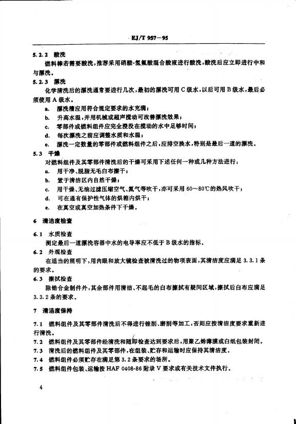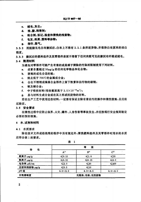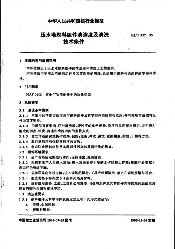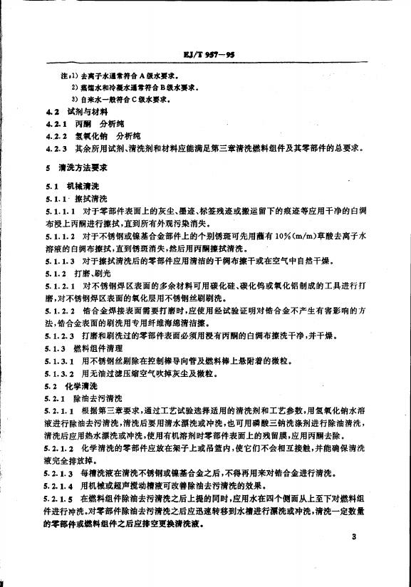 EJ/T 957-1995 压水堆燃料组件清洁度及清洗技术条件