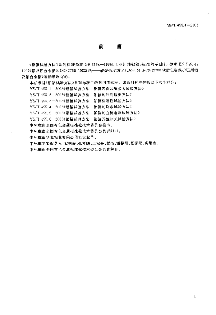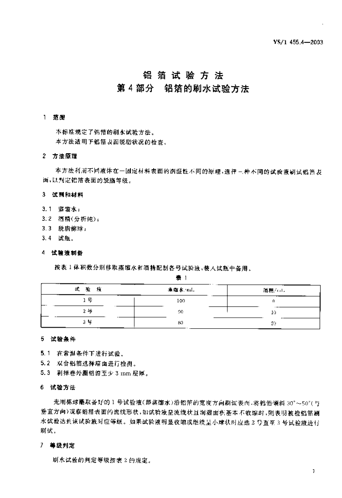 YS/T 455.4-2003 铝箔试验方法 第4部分:铝箔的刷水试验方法
