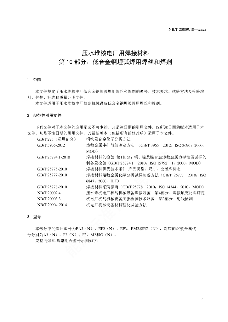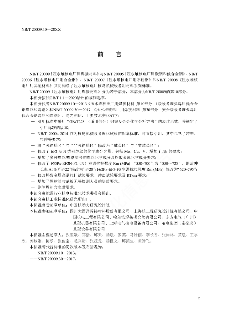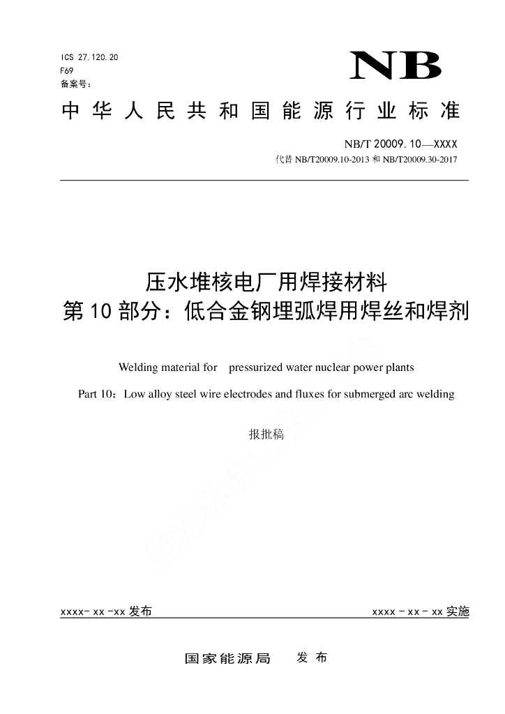 NB/T 20009.10-2021 压水堆核电厂用焊接材料 第10部分:低合金钢埋弧焊用焊丝和焊剂