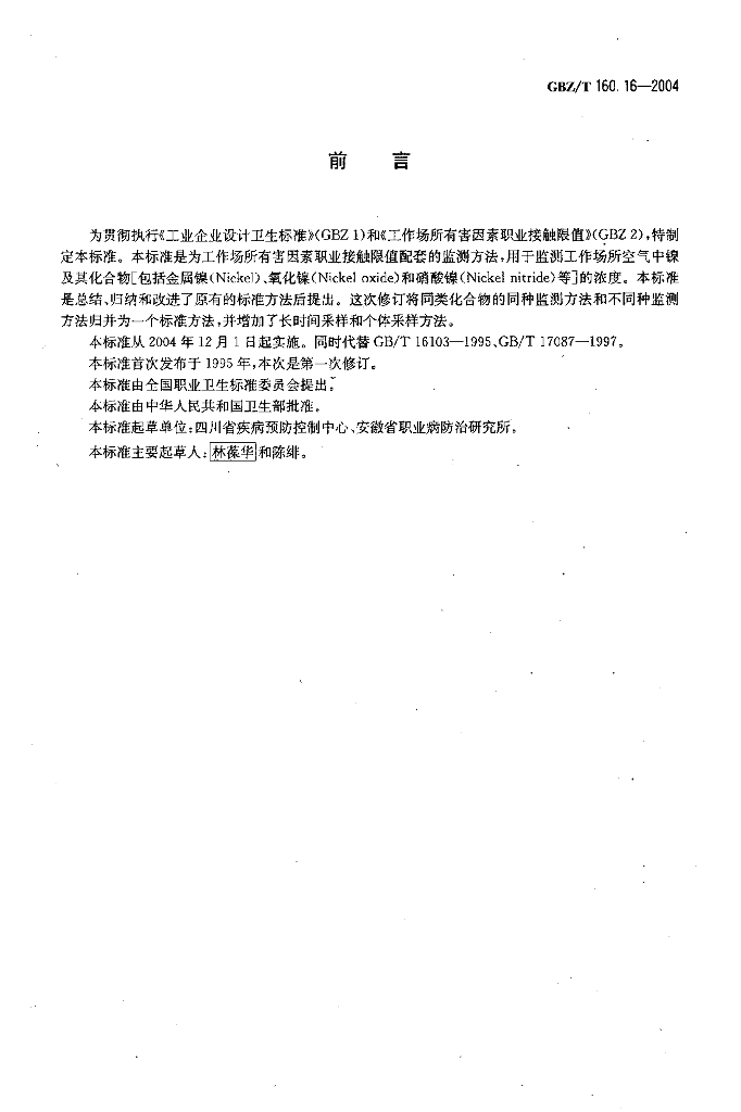 GBZ/T 160.16-2004 工作场所空气有毒物质测定 镍及其化合物