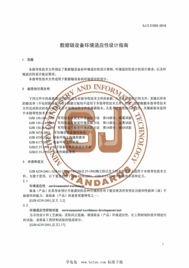 SJ/Z 21503-2018 数据链设备环境适应性设计指南