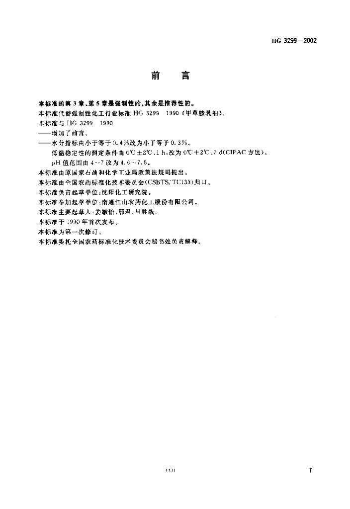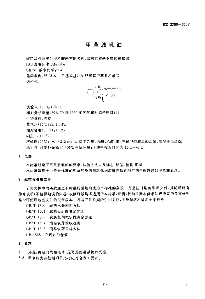 HG 3299-2002 代替 HG 3299-1990 甲草胺乳油