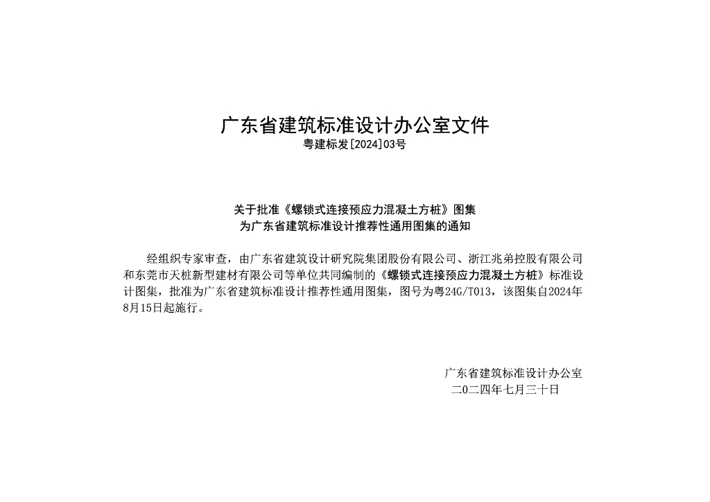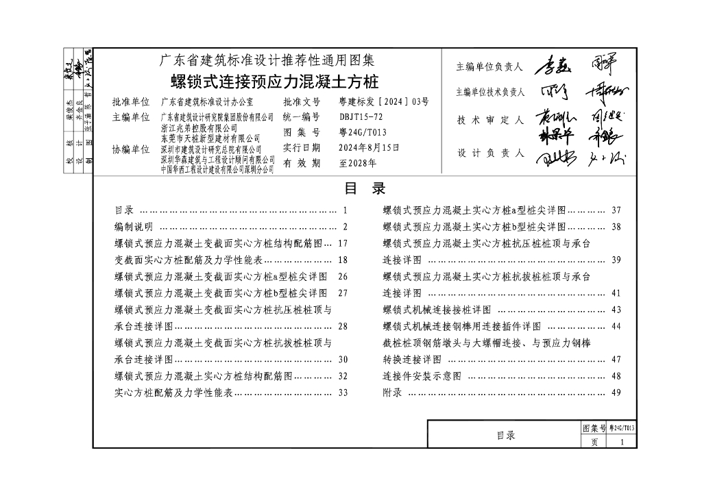 粤24G/T013 螺锁式连接预应力混凝土方桩图集