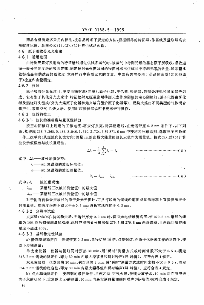 YY/T 0188.5-1995 药品检验操作规程 第5部分:药品仪器分析法