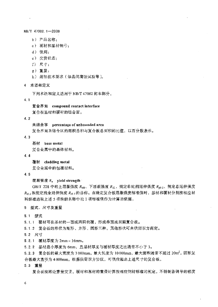 NB/T 47002.1-2009 压力容器用爆炸焊接复合板 第1部分:不锈钢-钢复合板